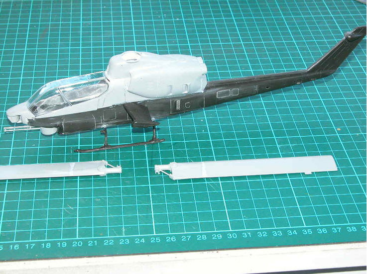 I was soon to realise that the J version could be described as a merger of the single engine airframe such as on the S version to the twin engine set up found on the T version. As no J version has been kitted in 48 scale the only way to build an Iranian Cobra was to kit bash one. This was going to require the purchase of a Monogram S version to provide the correct lower fuselage and tail boom.