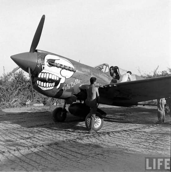 During the Battle for Imphal and the subsequent drive into Burma, the 80 th FG provided support for Allied ground forces by bombing and strafing Japanese troops, destroying artillery, supply dumps and lines of communication. Calling themselves the “Burma Banshees”, the group decorated the nose of their P-40s with gruesome skull designs.